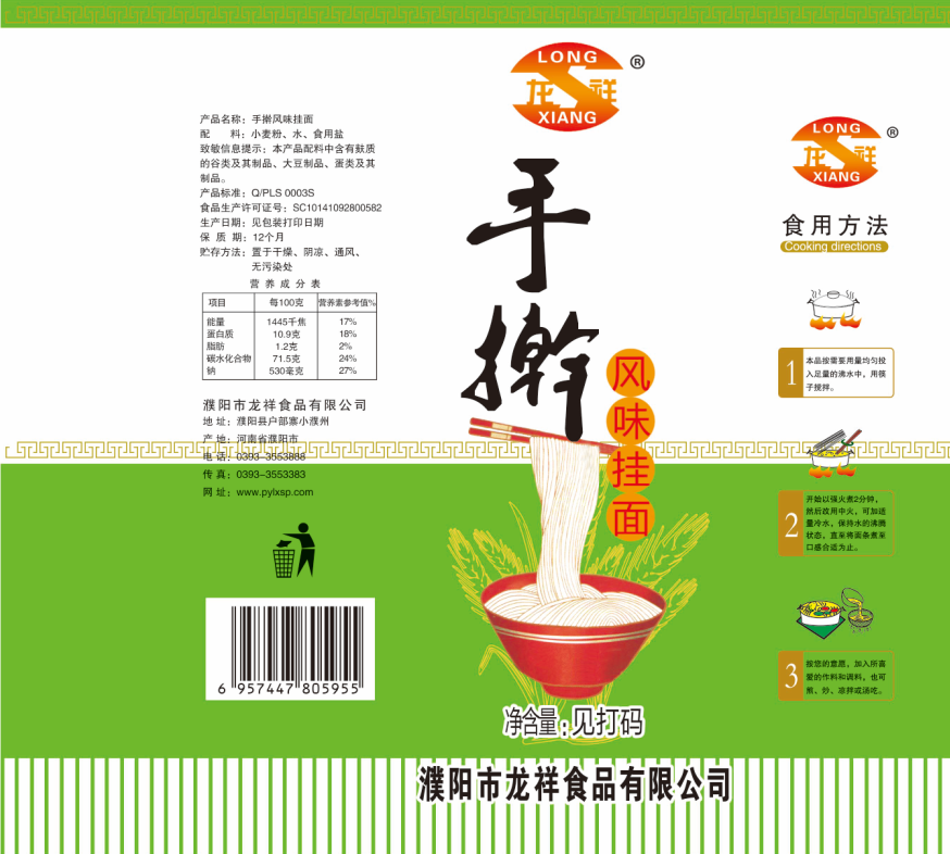 濮陽市龍祥食品有限公司位于河南省濮陽縣戶部寨鎮(zhèn)小濮州,始建于1994年,前期投資200萬元,經(jīng)過幾年的努力,大力開發(fā)市場,由于市場的需求量急劇上升,出現(xiàn)供不應(yīng)求,于2004年擴(kuò)建,建成一座新型的現(xiàn)代化面粉加工企業(yè),并擁有全國先進(jìn)全自動生產(chǎn)設(shè)備一套,產(chǎn)量由以前的100噸/天,提高到現(xiàn)在400噸/天。 2012年再次擴(kuò)大規(guī)模申請為濮陽市龍祥食品有限公司,注冊資金500萬元。2012年又投資800萬元新建掛面生產(chǎn)線一條,日產(chǎn)掛面50噸。龍祥食品有限公司現(xiàn)有職工120余人,總工程師1人,專業(yè)技術(shù)人員10人,經(jīng)濟(jì)師1人,會計師1人,銷售人員2人,優(yōu)秀專業(yè)人員20余人。 龍祥公司自創(chuàng)建以來,社會效益十分可觀。公司一直以“今天的質(zhì)量,明天的市場”為信念,“一切為了客戶需求,竭誠追求完美品質(zhì)”為企業(yè)宗旨,走專業(yè)化經(jīng)營和職業(yè)化管理的路子。